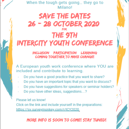 Welcome to The 9th InterCity Youth Conference A QUICK ZOOM ON… YOUTH WORK POLICY AND PRACTICE Date: 26-27-28 October 2020 Registration deadline: … Read more